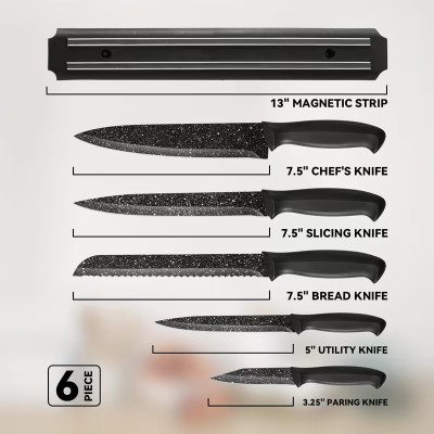 покрытие > məişət texnikası > 6pcs, Kitchen Knife Set with No Drilling Magnetic Strip for Kitchen Black Titanium Small Cooking Knives, Sharp Stainless Steel Chef Knife Set for Cutting Meat & Vegetable