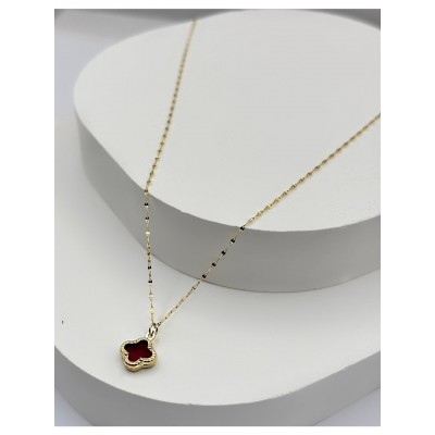 الطلاء > Altın / Takı > Diamine Pırlanta 14 Ayar Altın Bordo Taşlı Yonca Kolye ( 8mm )