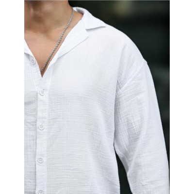 Apaş Yaka Oversize Müslin Kumaş Gömlek