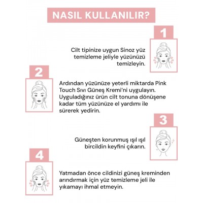 Açık tenliler, ton eşitsizliği yaşayan, hassas ve kızarıklığa yatkın cilt tipleri için de uygun olan Sinoz Pink Touch Ton Eşitleyici Pembe Yüz Bakım Kremi, cilt tonu eşitleyici özelliğinin yanı sıra aktif içerikleri sayesinde cildin daha aydınlık ve canlı görünmesini destekler.
