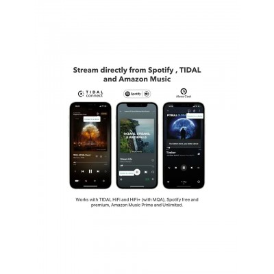 SPOTIFY CONNECT, TIDAL CONNECT VE AMAZON MUSIC CAST - Spotify Connect, TIDAL Connect veya Alexa Cast'ı kullanarak doğrudan Spotify, TIDAL veya Amazon Music uygulamasından müzik akışı yapın. Bu, geleneksel Bluetooth veya AirPlay 2 alıcılarına kıyasla üstün ses kalitesi ve daha geniş kapsama alanı sunarak mobil cihazınızı diğer etkinlikler için serbest bırakır. Spotify Ücretsiz/Premium kullanıcıları, TIDAL'in HiFi ve Master'ı, Amazon Prime Music ve Amazon Music Unlimited için çalışır.